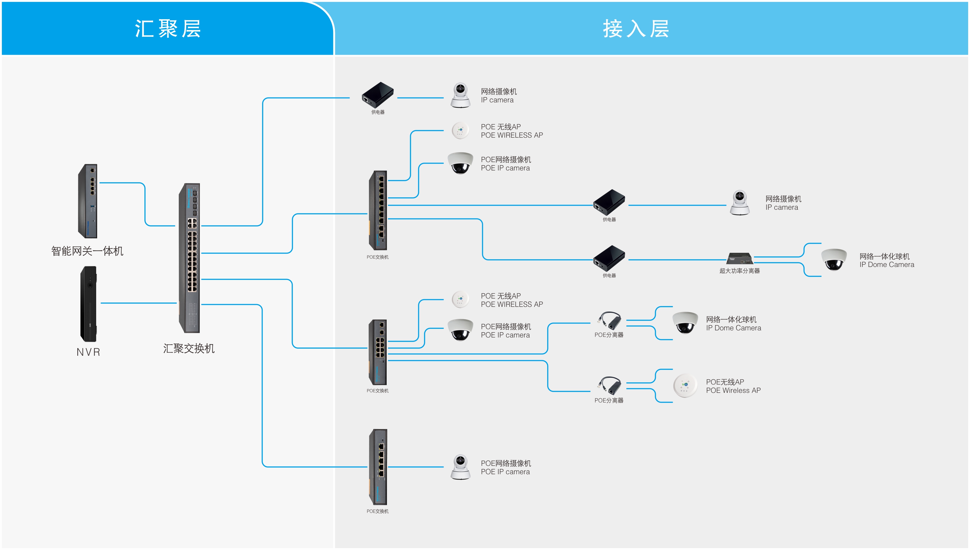 ◆支持通过超5类以上网线为网络摄像头、无线AP等设备供电
