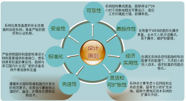 总体设计原则围绕着“应用集成化、管理透视化、业务协同化、流程柔性化”,它保证最终平台和系统具有高度的安全性、先进性、经济实用性、可扩展性和开放性,采用成熟的技术、工具平台,同时又要具有一定的向下兼容性,以保护使用单位现有的软硬件资源投资的长期性。